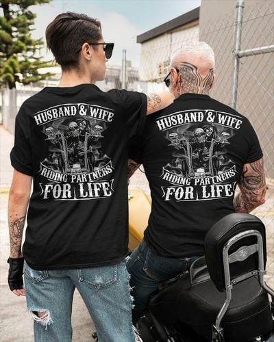 Motorcycle Skull Couple Husband And Wife Riding Partner For Life Tshirt Men Ebay